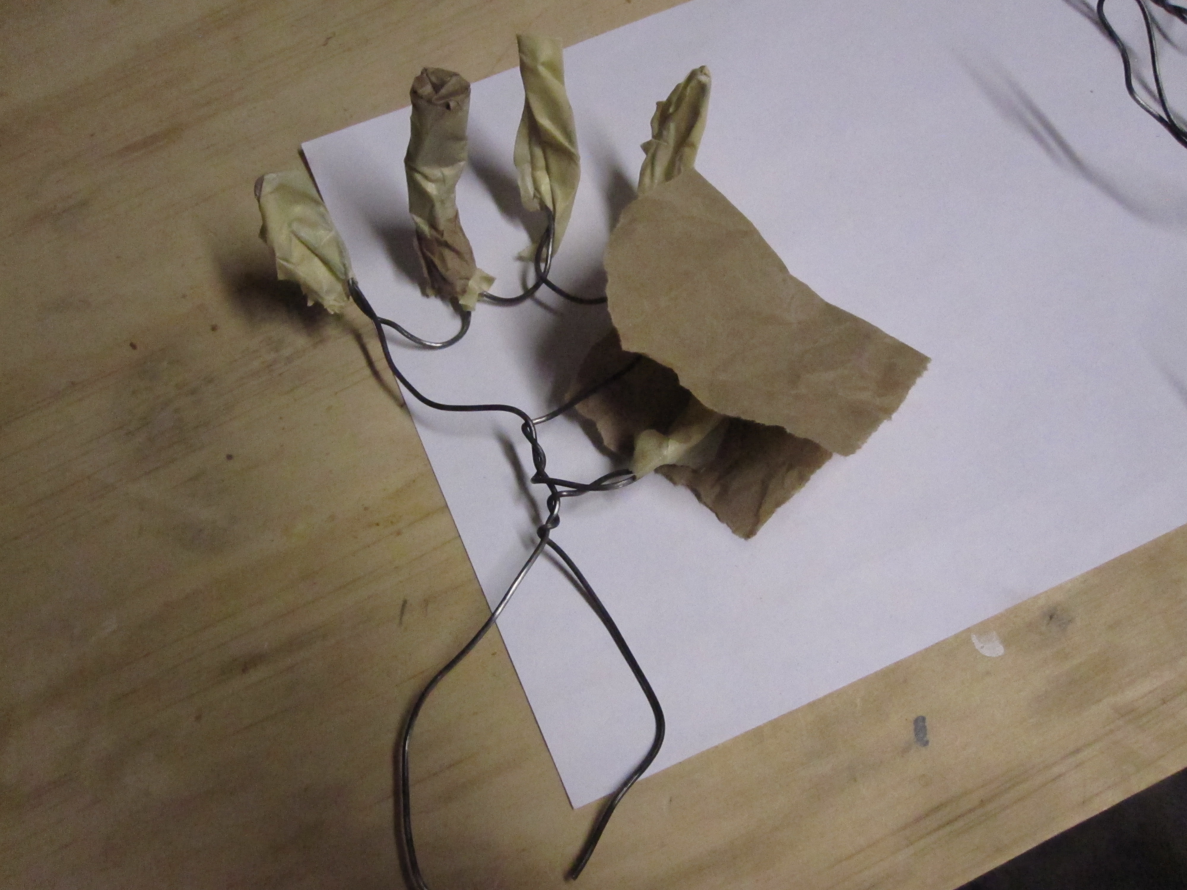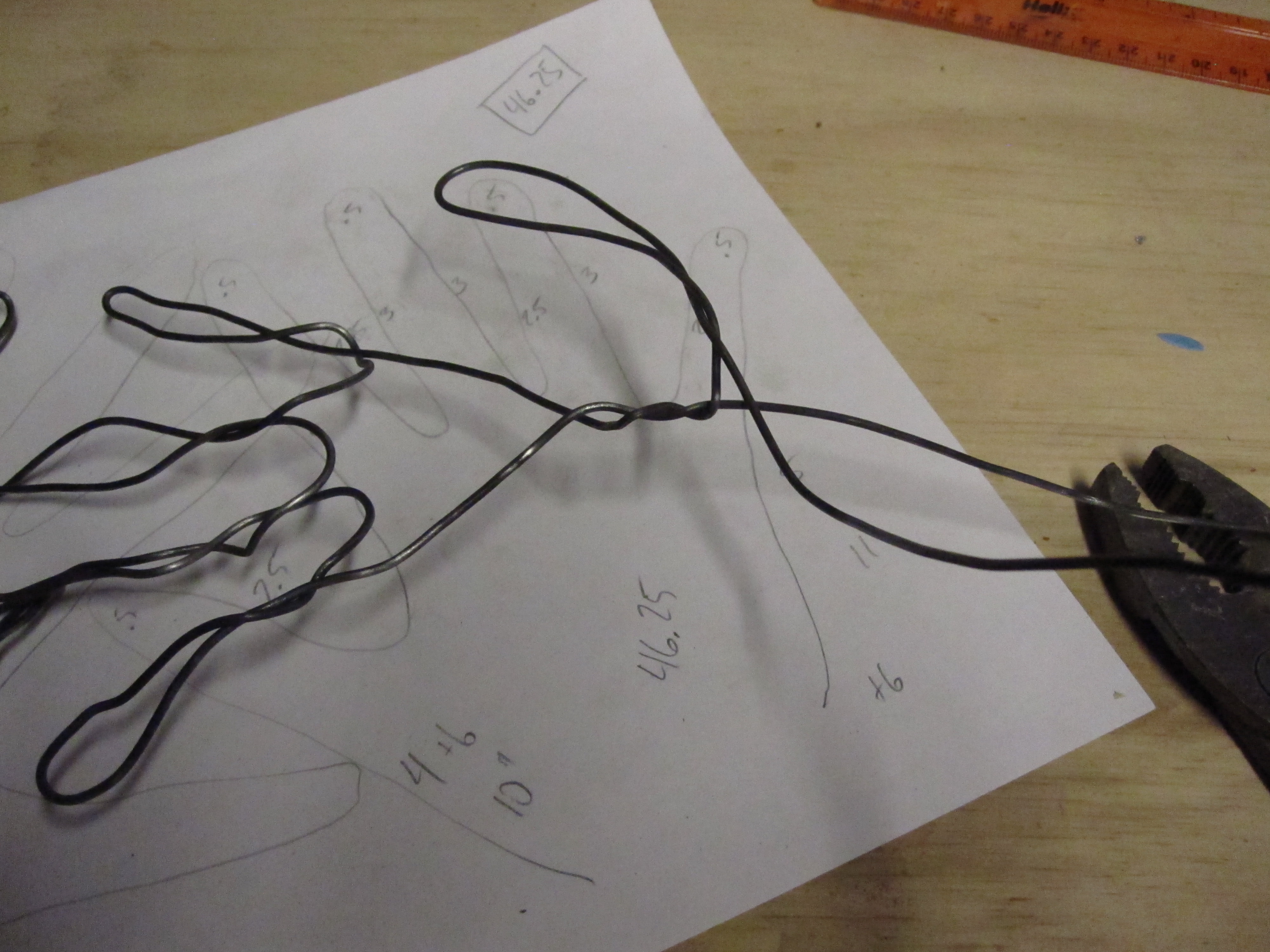 Twist the wire here a couple extra times for strength. This is where the wrist and the thumb meet, so any extra twists you can add will make your hand stronger.
